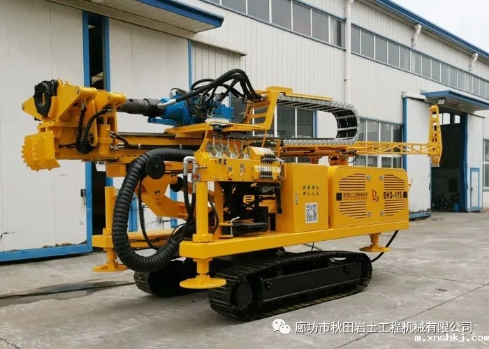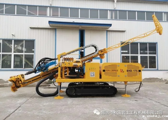 BHD175型多功能betway官方app采用电机驱动,整机结构简单,稳定性好。带刹车的回转平台左右转向近180度,可以任何方向施工。液压泵、阀、马达、胶管等均采用进口知名品牌。配备卷扬和加长副杆方便吊装套管、锚杆。